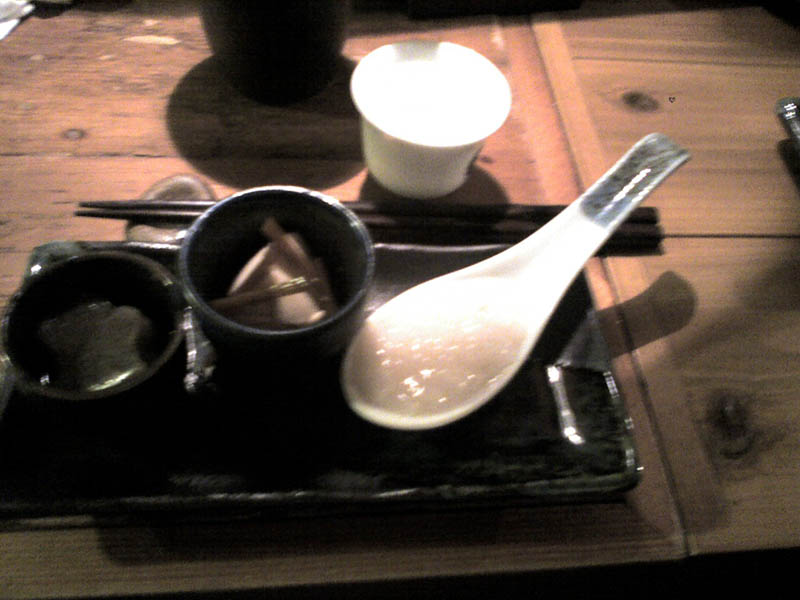 お通しに一口のおかゆを供してくれるお店です。