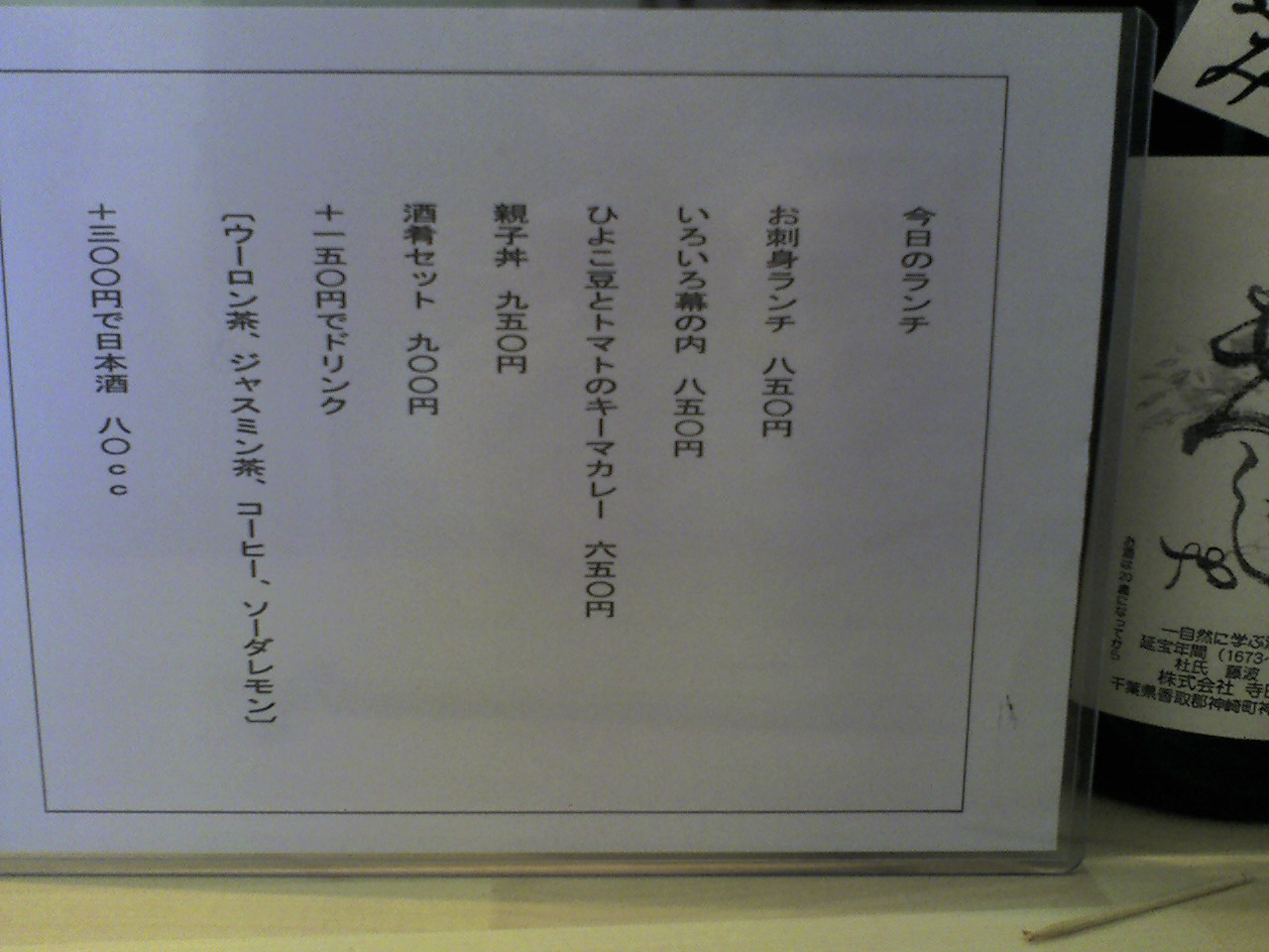 う~ん、日本酒とランチで1000円・・とすると