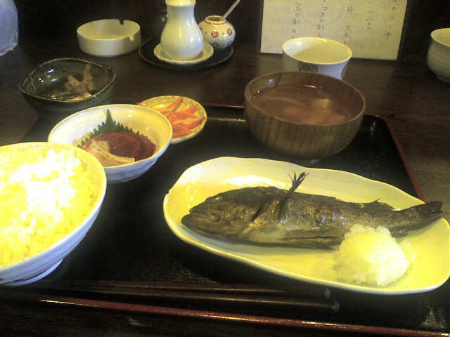 「焼き秋刀魚とマグロの刺身の定食」、