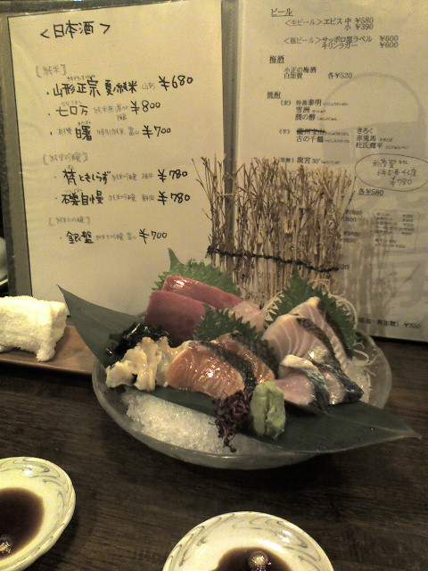 写真のお造りは1人前 1280円です。